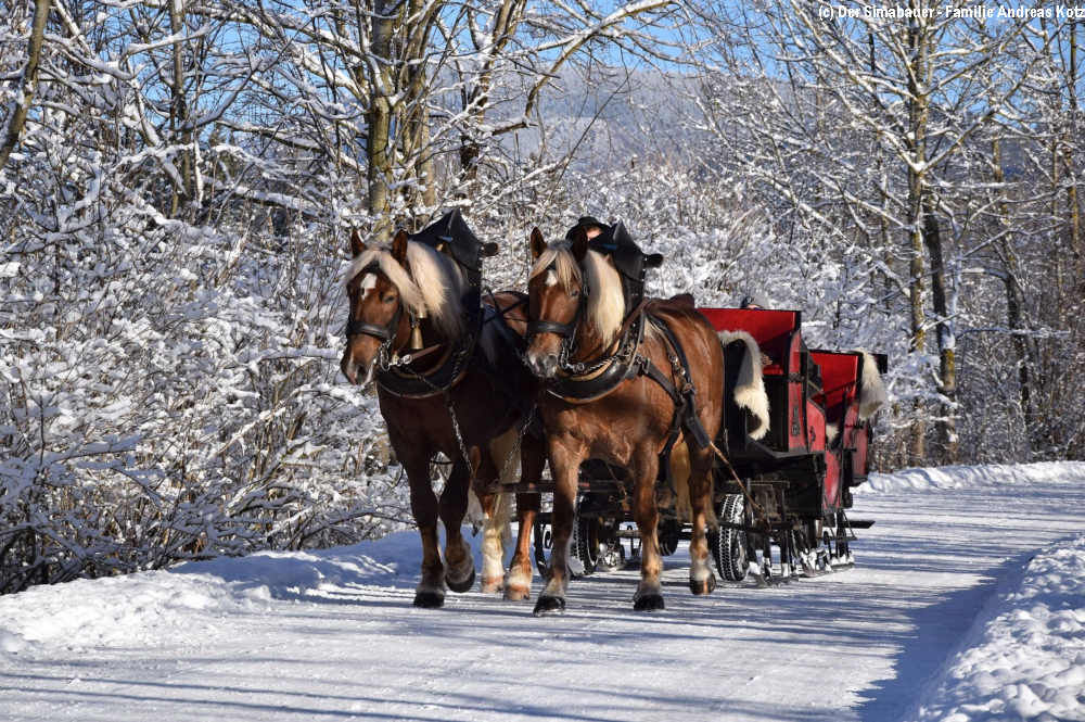 romantische Pferdeschlittenfahrt durch die märchenhafte Winterlandschaft Schwangaus